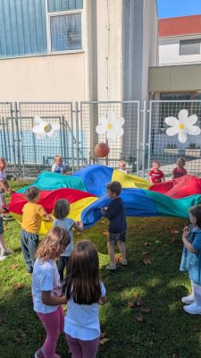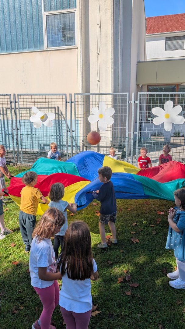 Otroci so se razveselili iger s pisanim padalom, pogumno premagovali razgiban poligon, se preizkusili v spretnostnih nalogah ter uživali v različnih gibalnih izzivih. Sodelovali so drug z drugim, si navijali in ob tem razvijali veselje do gibanja. Prepričani smo, da nas čaka še veliko podobnih športnih trenutkov, ki bodo otrokom prinesli veselje in dragocene izkušnje.