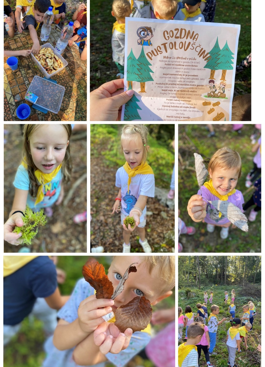 V enem od sončnih dni smo se odpravili na sprehod v gozd, kjer smo doživeli pravo gozdno pustolovščino. Iskali smo različne gozdne značilnosti – liste, plodove, storže, lubje in živali. Ugotavljali smo, kako se narava spreminja z jesenjo in zakaj je pomembno, da jo ohranjamo čisto. Otroci so z radovednostjo raziskovali, primerjali in delili svoja opažanja. Gozd je postal igralnica brez sten, polna zanimivih vonjev, barv in tišine.
