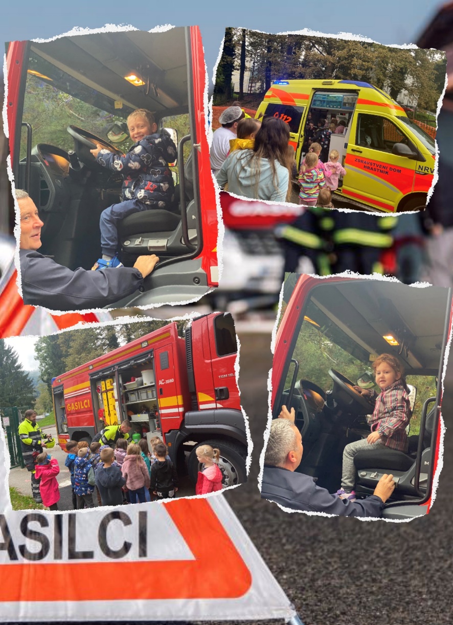 Mesec smo zaključili z zelo pomembno in poučno dejavnostjo – vajo evakuacije. Obiskali so nas gasilci in reševalci, ki so nam pokazali svoje delo, opremo in vozila. Otroci so z zanimanjem poslušali, kako poteka reševanje ob nesrečah, ter si ogledali notranjost reševalnega vozila. Spoznali smo, kako pomembno je, da ob nevarnosti ravnamo mirno in sledimo navodilom odraslih.